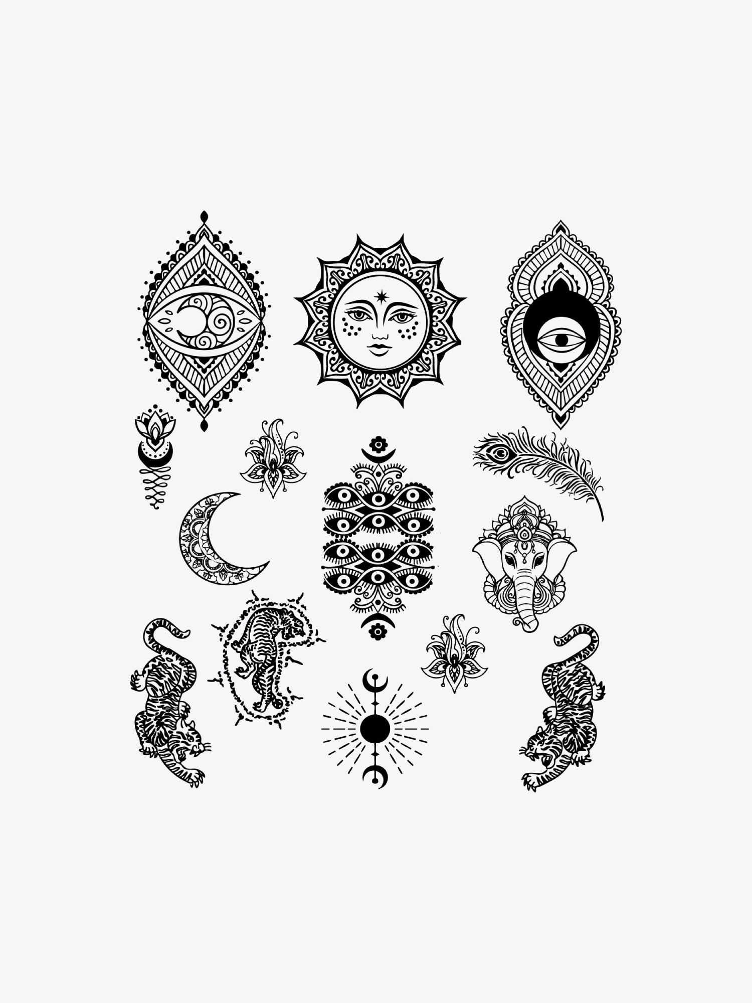 By contrast, Bundles feature multiple tattoos of a similar style, printed on one sheet so you can cut them out and arrange them however you like. While Shop The Look provides ready-made placement suggestions, Bundles give you the freedom to decide exactly how to place each tattoo for a more personalized